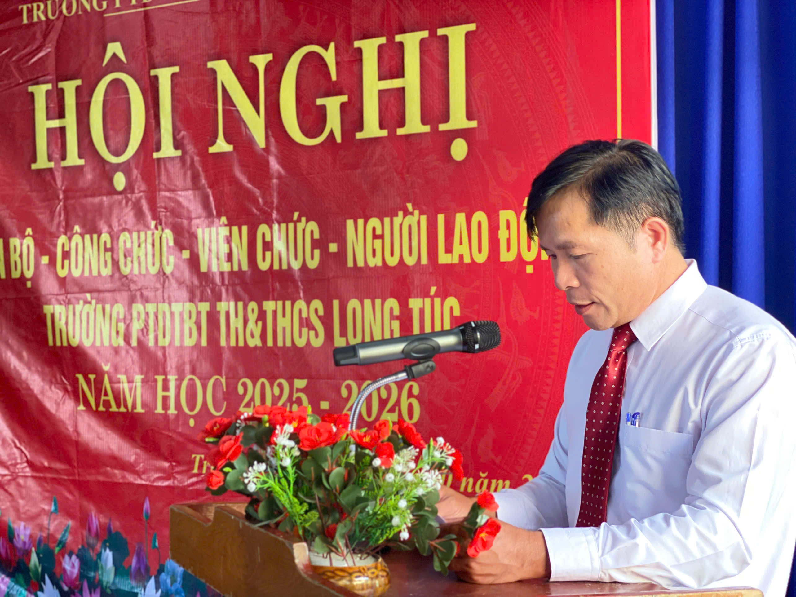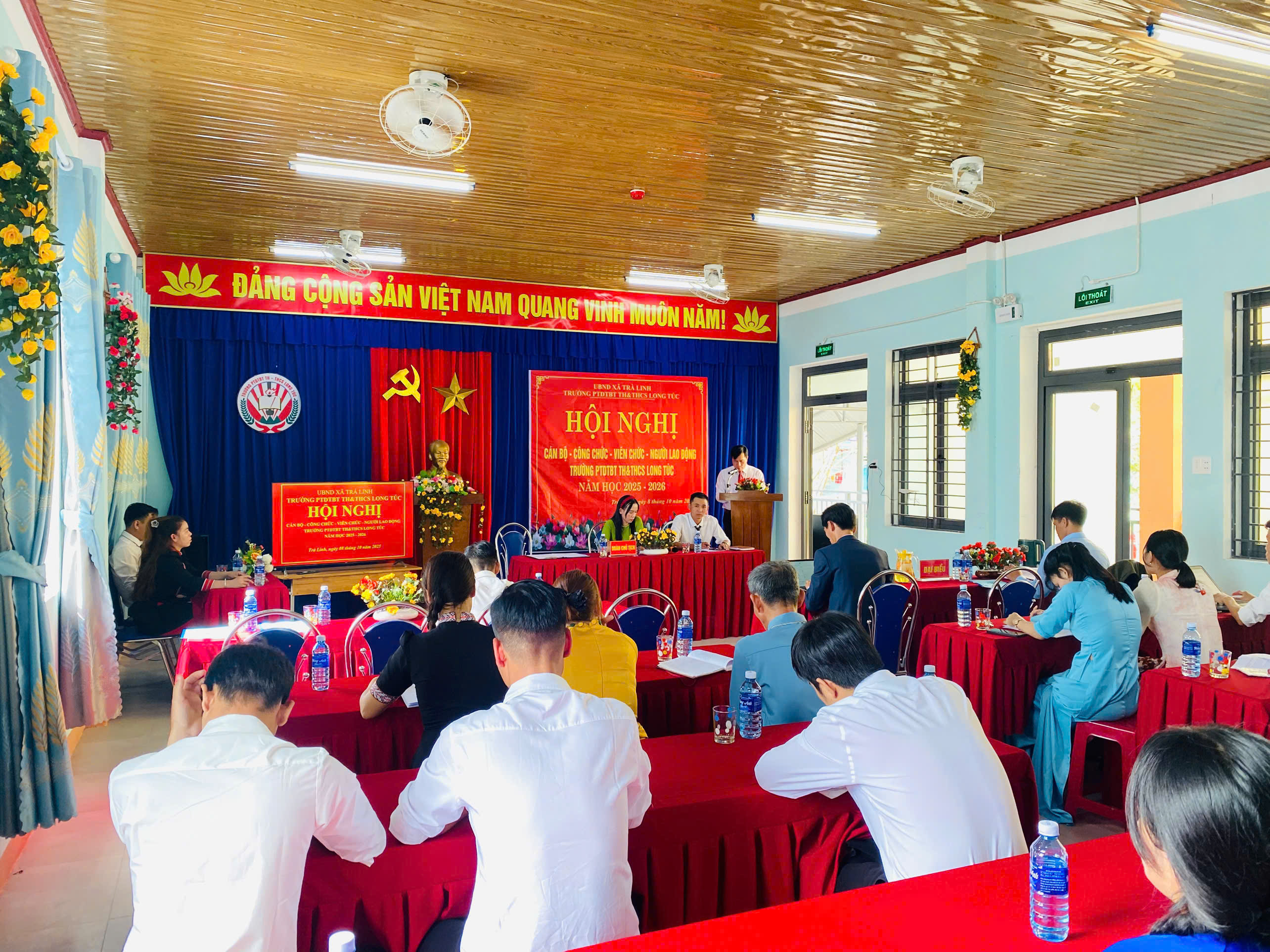 Thực hiện nhiệm vụ năm học 2025-2026 hôm nay trường PTDTBT TH&THCS Long Túc long trọng tổ chức HNCBCCVC năm học 2025-2026 nhằm đánh giá đúng kết quả thực hiện nhiệm vụ của nhà trường năm học 2024-2025 , Điểm lại những thành công và tìm ra nguyên nhân hạn chế để xây dựng giải pháp, kế hoạch, chỉ tiêu, nhiệm vụ năm học 2024-2025 phù hợp với sự chỉ đạo của ngành và yêu cầu cụ thể của nhà trường.
